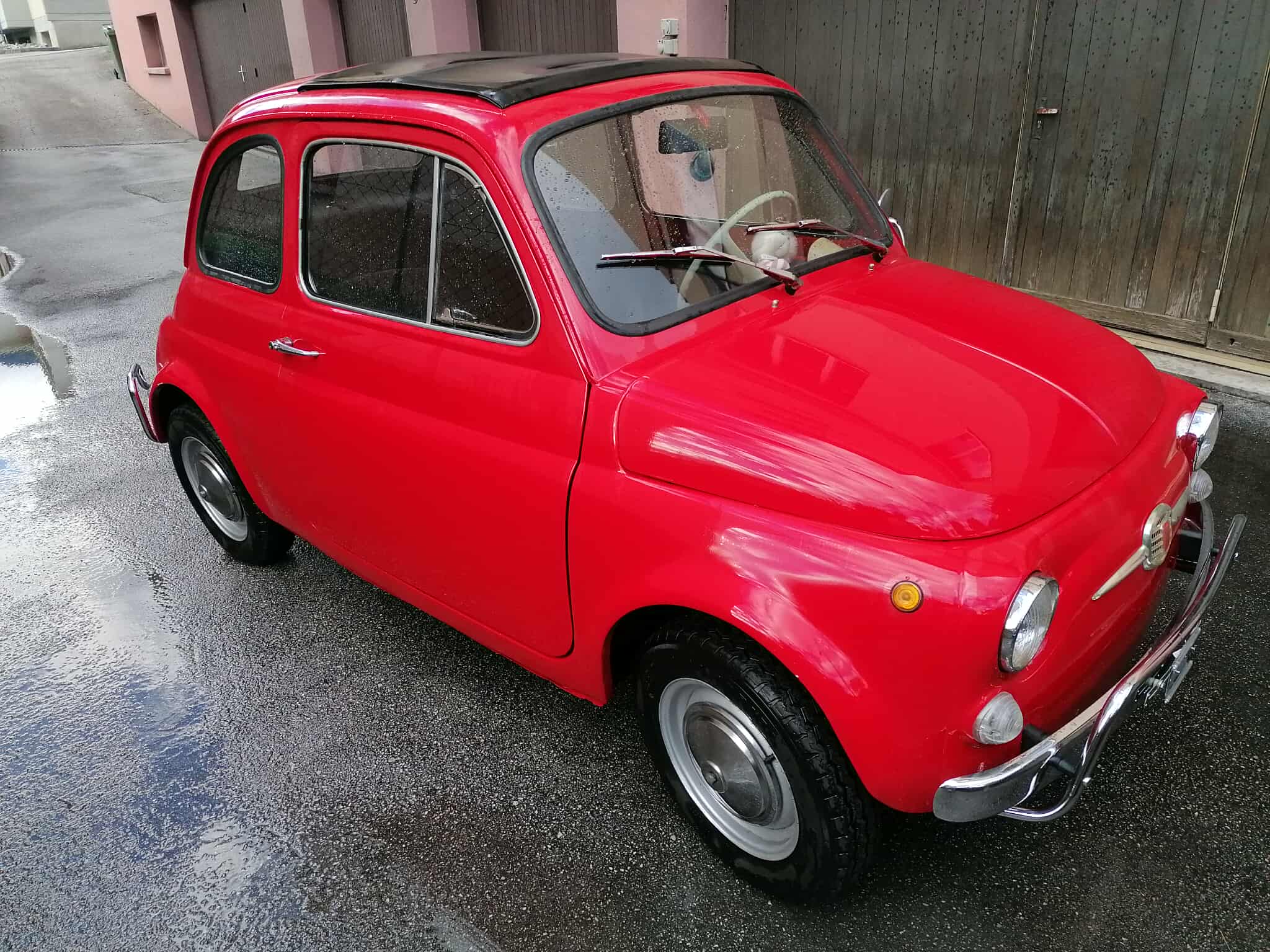 Elle a connu les virées du dimanche, les marchés en centre-ville, les virages serrés sur les routes toscanes — et aujourd’hui, elle roule toujours, comme au premier jour. Restaurée avec soin, peinture neuve, intérieur refait à neuf, et roule parfaitement. Cette 500 a gardé son âme, mais avec un éclat retrouvé.